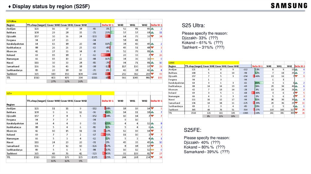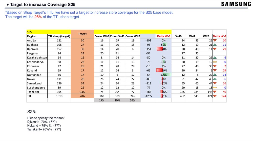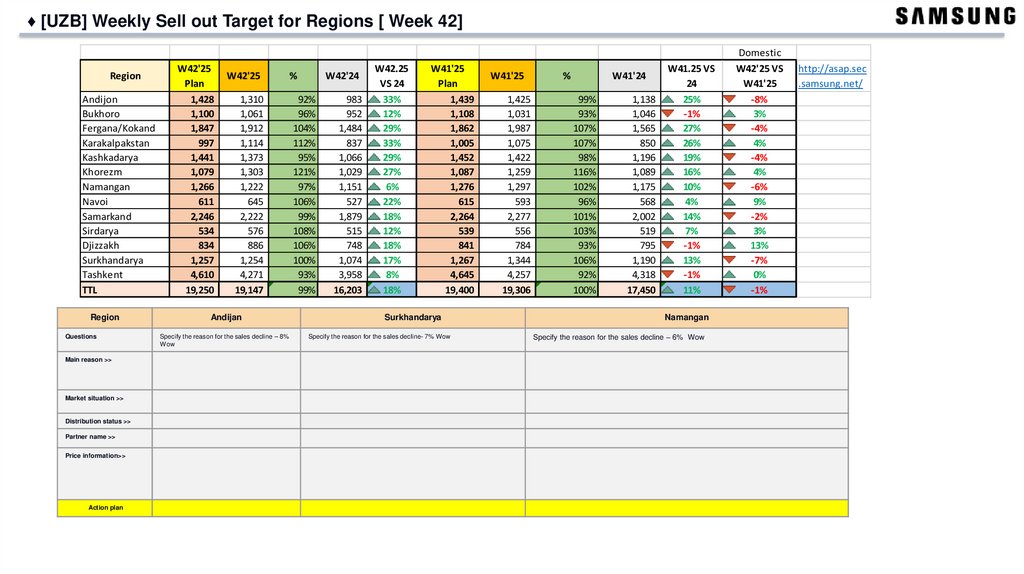 ♦ [UZB] Weekly Sell out Target for Regions [ Week 42]Region