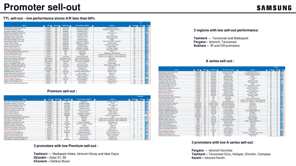 Promoter sell-outTTL sell-out – low performance stores A/R less than 60%