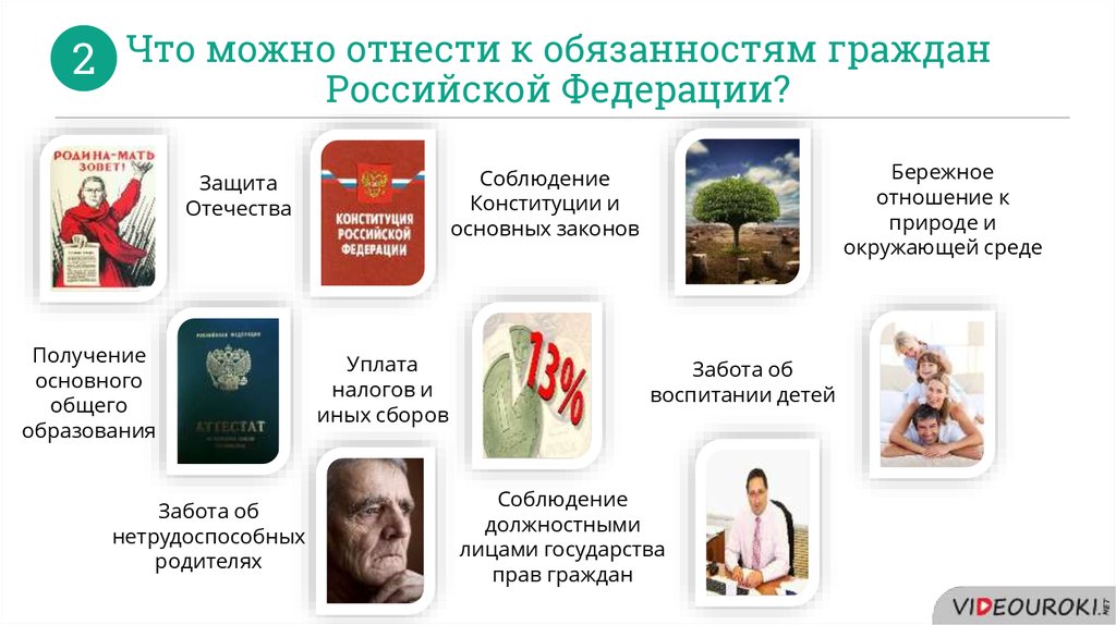 2 Что можно отнести к обязанностям гражданРоссийской Федерации?