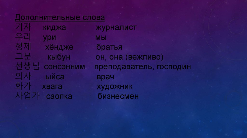 Дополнительные слова• 교수님