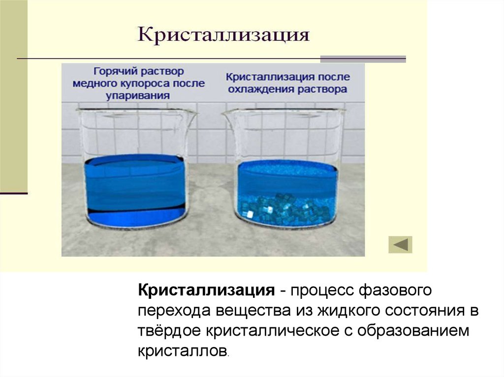Кристаллизация - процесс фазовогоперехода вещества из жидкого состояния в
