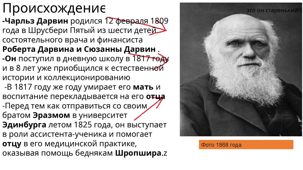 Происхождение:-Чарльз Дарвин родился 12 февраля 1809