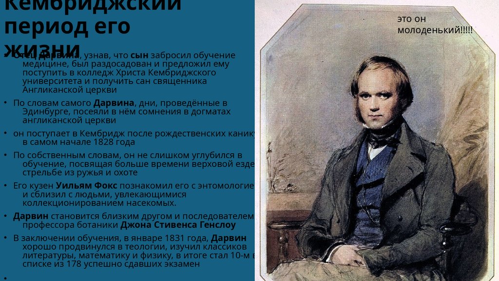 • В заключении обучения, в январе 1831 года, Дарвин