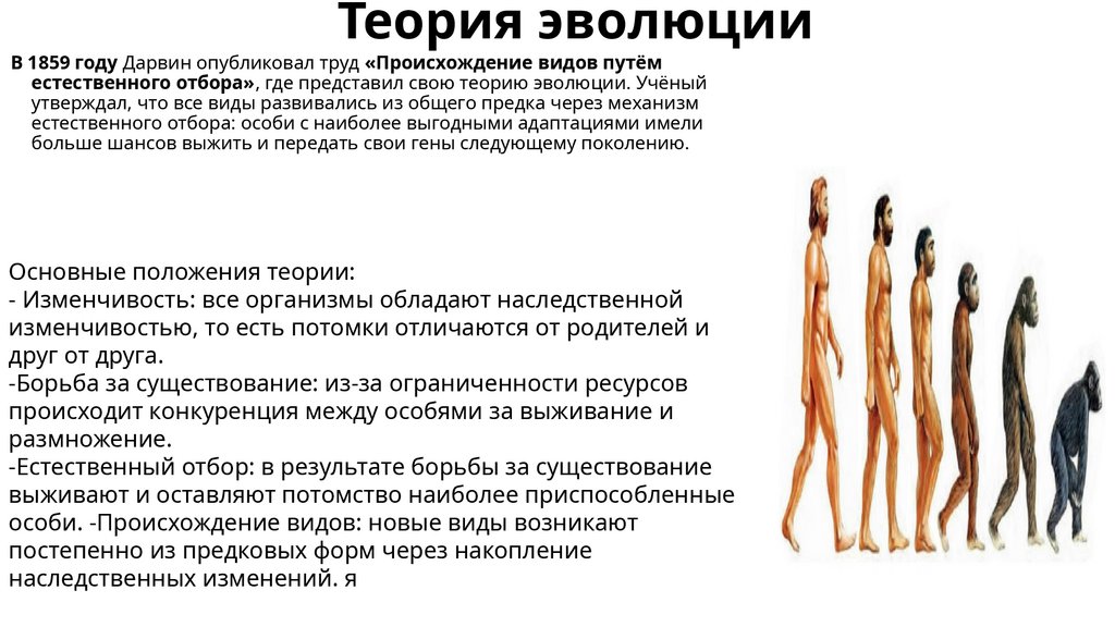 Теория эволюцииВ 1859 году Дарвин опубликовал труд «Происхождение видов путём