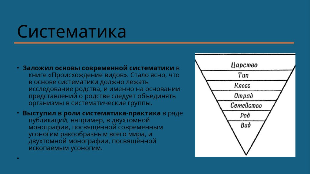 Систематика• Заложил основы современной систематики в
