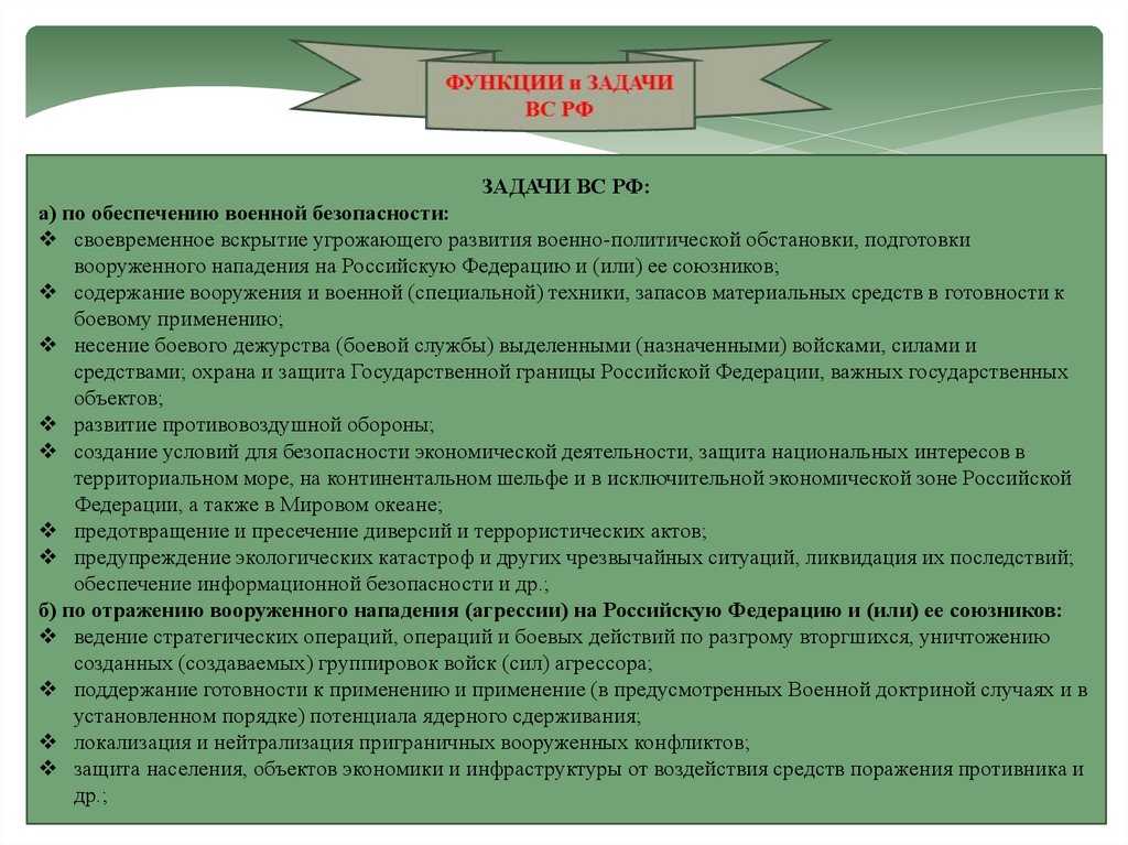 ЗАДАЧИ ВС РФ:а) по обеспечению военной безопасности: