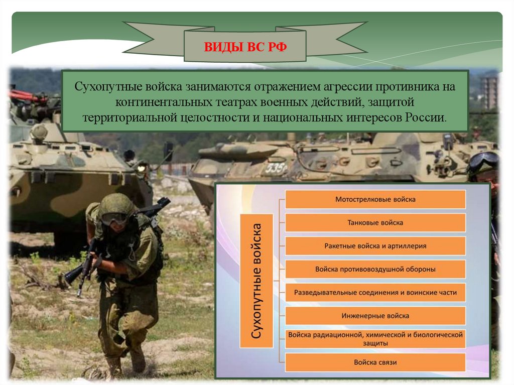 ВИДЫ ВС РФСухопутные войска занимаются отражением агрессии противника на