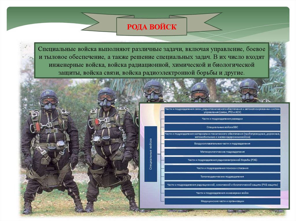 РОДА ВОЙСКСпециальные войска выполняют различные задачи, включая управление, боевое