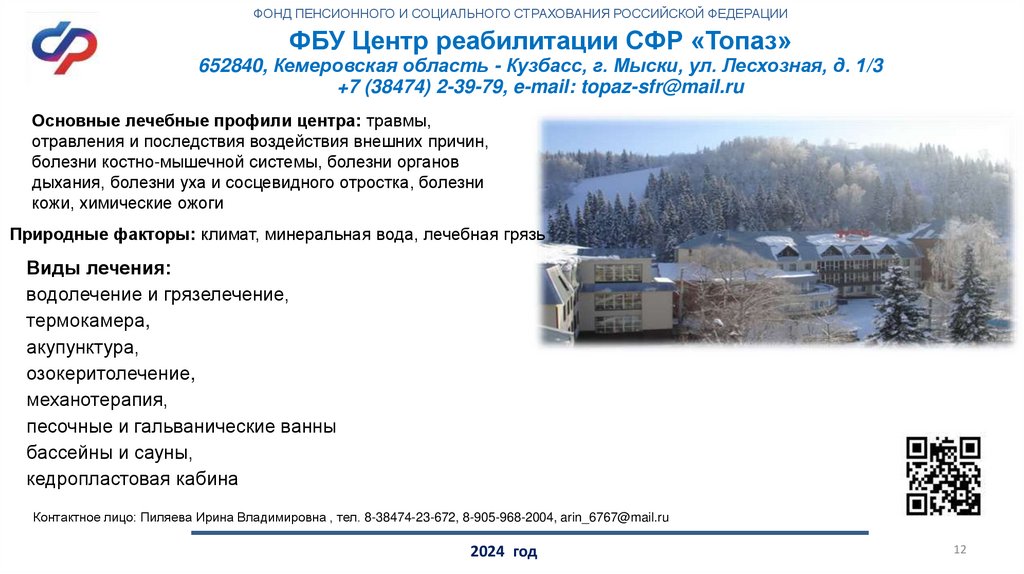 ФОНД ПЕНСИОННОГО И СОЦИАЛЬНОГО СТРАХОВАНИЯ РОССИЙСКОЙ ФЕДЕРАЦИИФБУ Центр реабилитации СФР «Топаз»