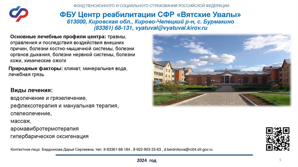 ФОНД ПЕНСИОННОГО И СОЦИАЛЬНОГО СТРАХОВАНИЯ РОССИЙСКОЙ ФЕДЕРАЦИИФБУ Центр реабилитации СФР «Вятские Увалы»