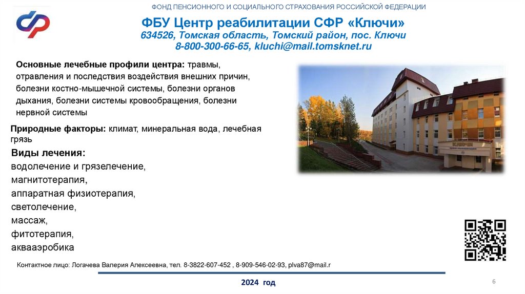 ФОНД ПЕНСИОННОГО И СОЦИАЛЬНОГО СТРАХОВАНИЯ РОССИЙСКОЙ ФЕДЕРАЦИИФБУ Центр реабилитации СФР «Ключи»