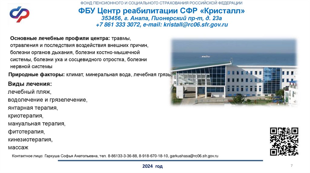 ФОНД ПЕНСИОННОГО И СОЦИАЛЬНОГО СТРАХОВАНИЯ РОССИЙСКОЙ ФЕДЕРАЦИИФБУ Центр реабилитации СФР «Кристалл»