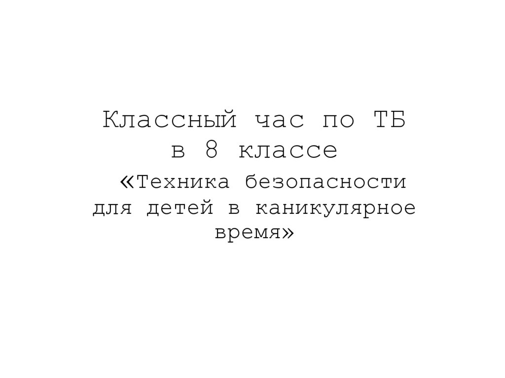 1. Классный час по ТБ в 8 классе «Техника безопасности для детей в каникулярное время»