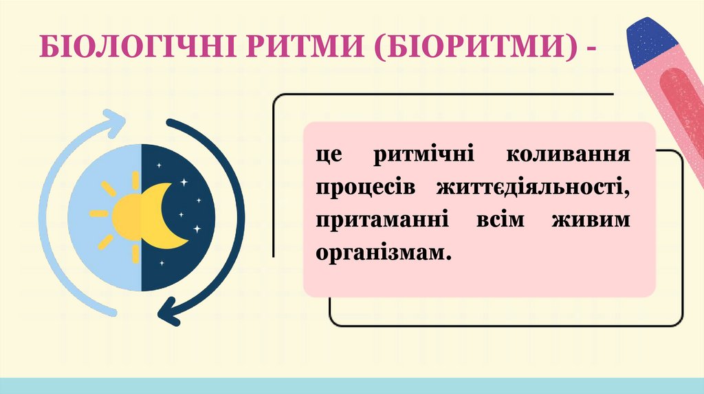 БІОЛОГІЧНІ РИТМИ (БІОРИТМИ) це ритмічні коливанняпроцесів життєдіяльності,
