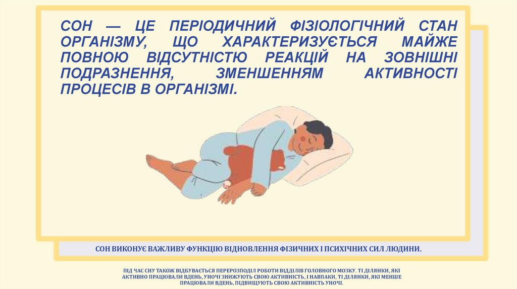 СОН — ЦЕ ПЕРІОДИЧНИЙ ФІЗІОЛОГІЧНИЙ СТАНОРГАНІЗМУ,
