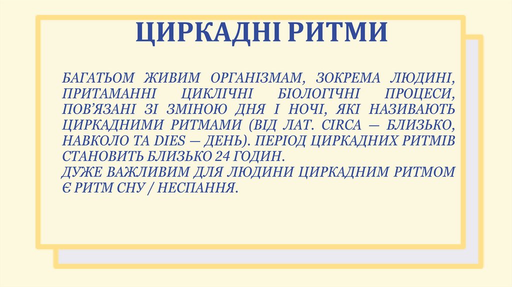 ЦИРКАДНІ РИТМИБАГАТЬОМ ЖИВИМ ОРГАНІЗМАМ, ЗОКРЕМА ЛЮДИНІ,
