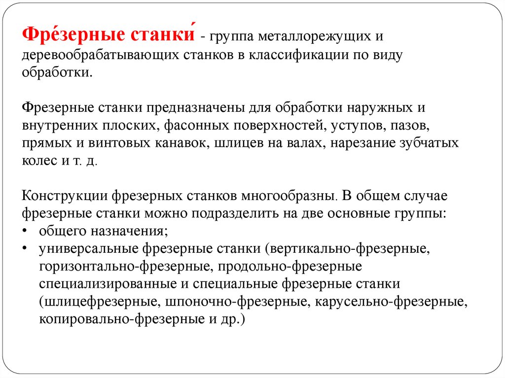 Фре́зерные станки́ - группа металлорежущих идеревообрабатывающих станков в классификации по виду