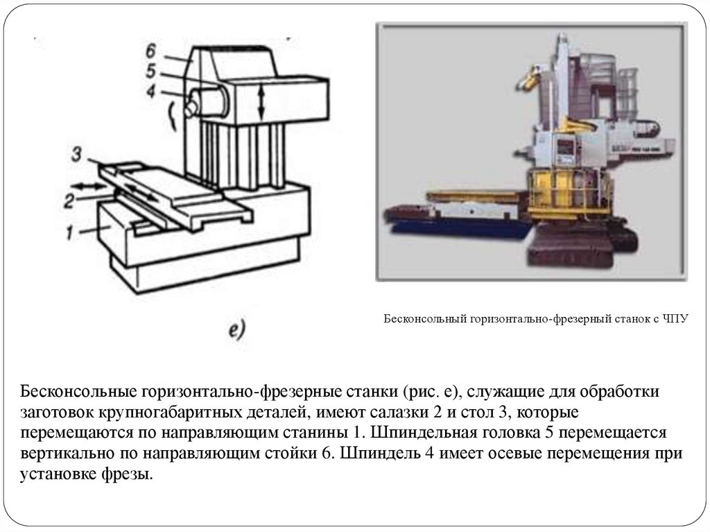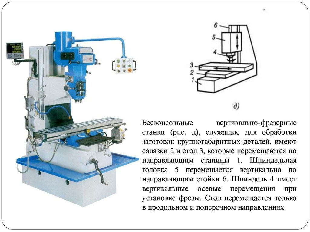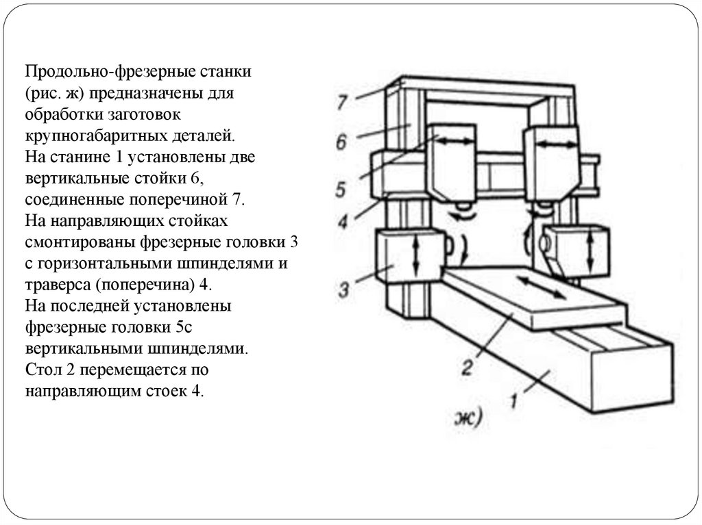 Продольно-фрезерные станки(рис. ж) предназначены для