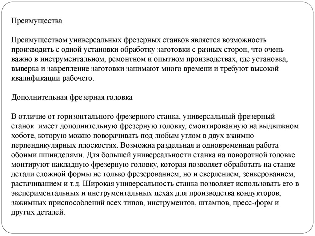 ПреимуществаПреимуществом универсальных фрезерных станков является возможность