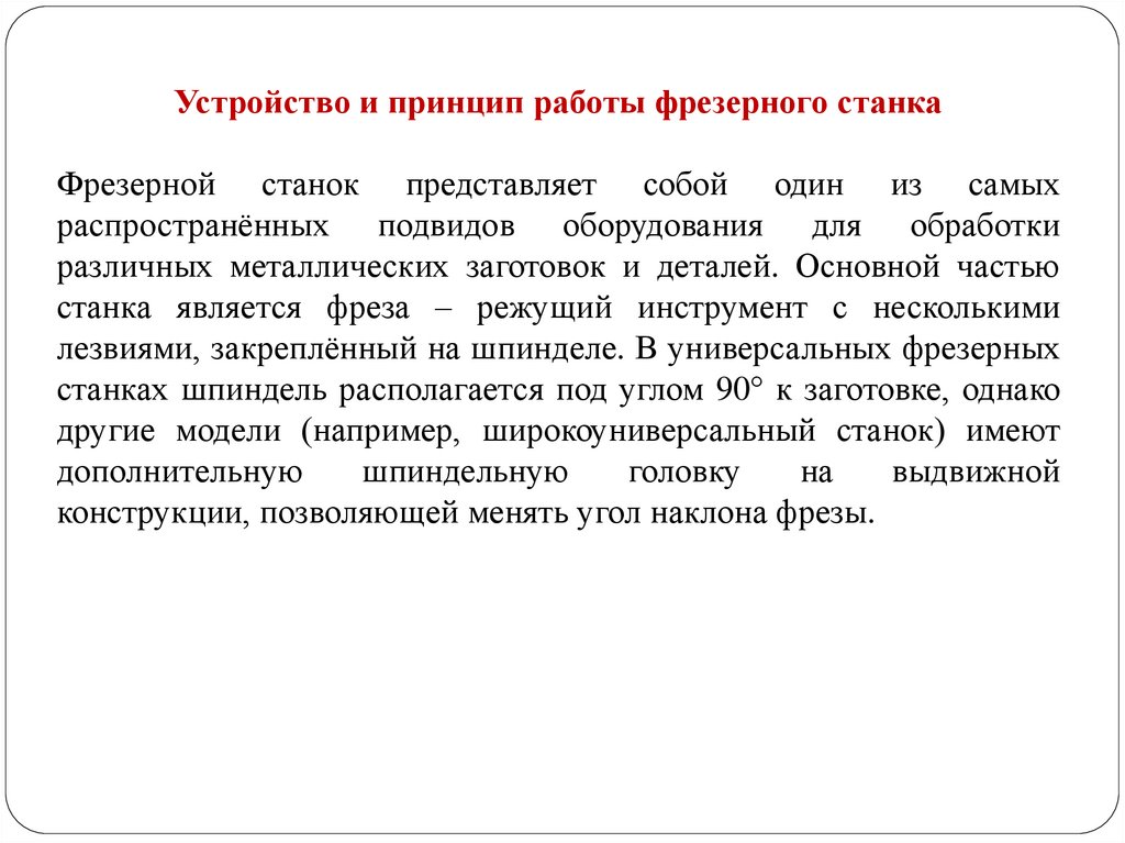 Устройство и принцип работы фрезерного станкаФрезерной станок представляет собой один из самых