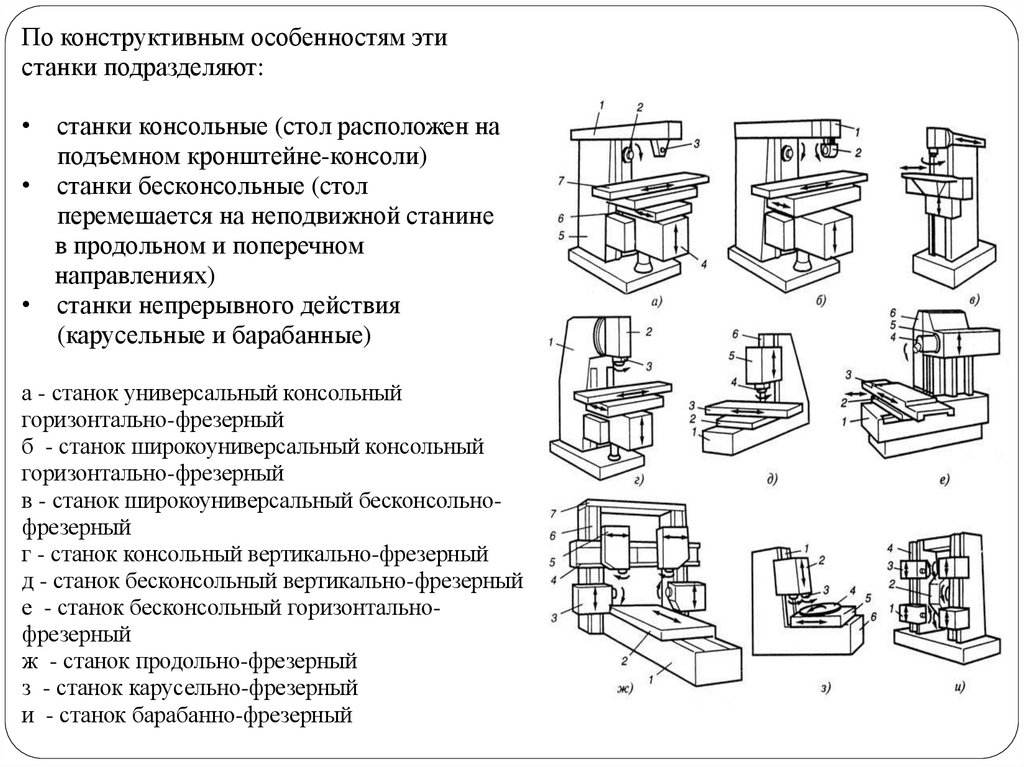 (шлицефрезерные, шпоночно-фрезерные, карусельно-фрезерные,