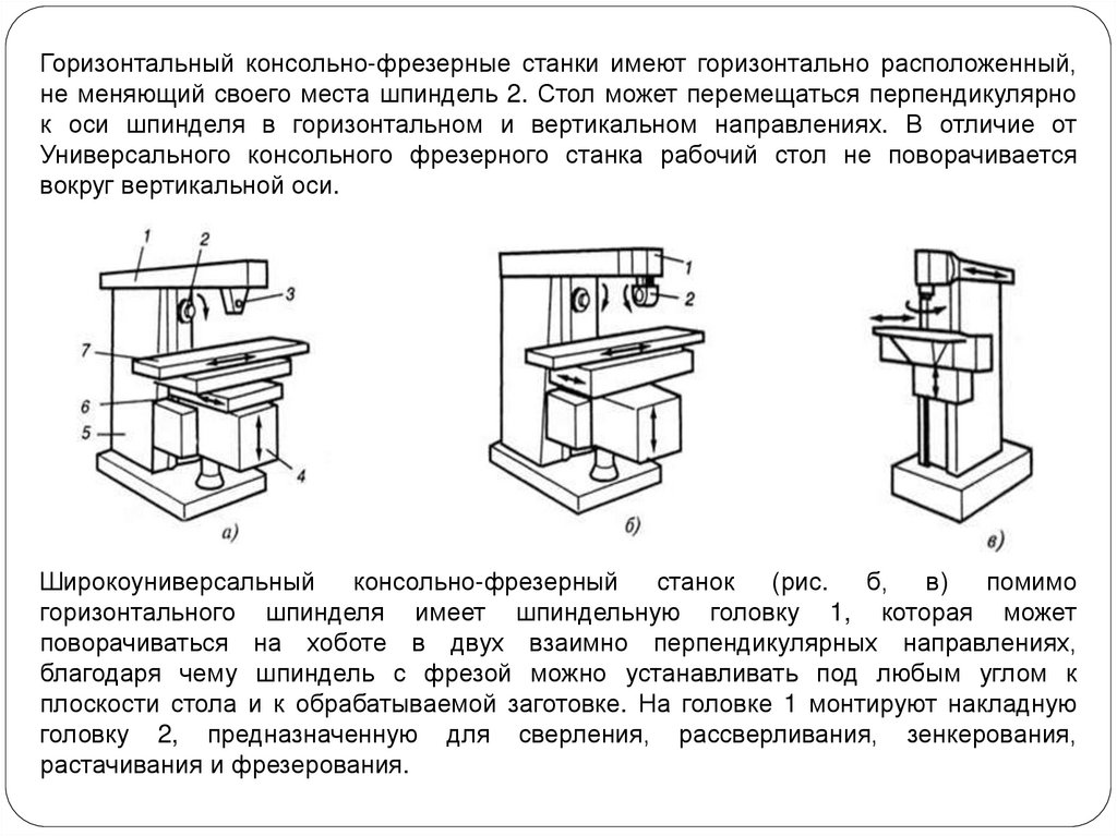 Консольно-фрезерные станки горизонтальные и вертикальные - это наиболеераспространенный тип станков, применяемых для фрезерных работ.