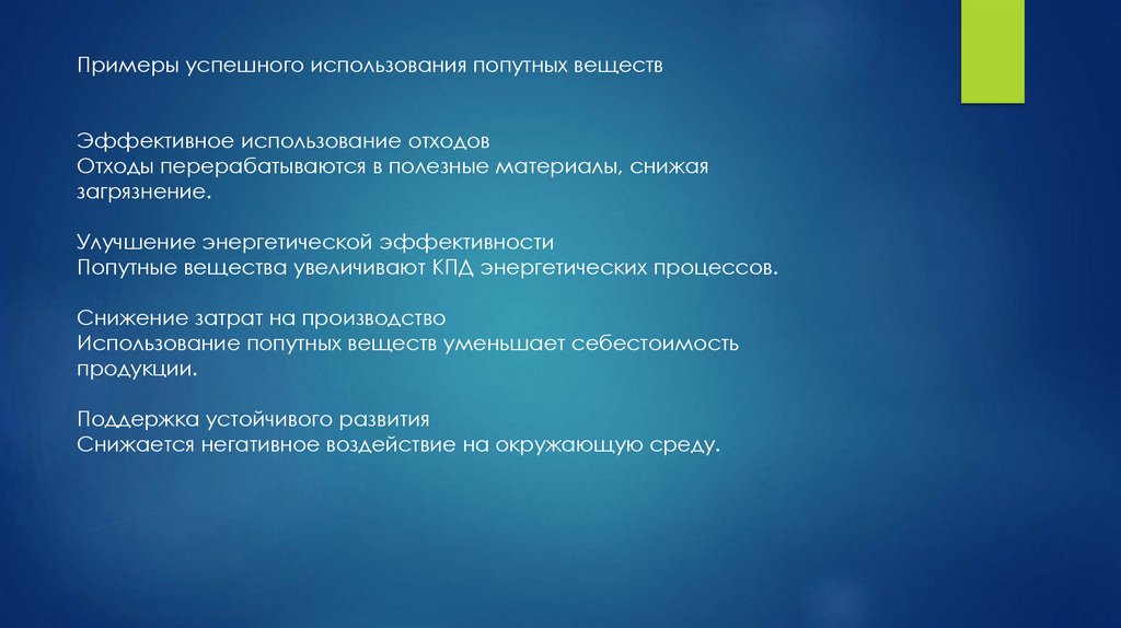 Примеры успешного использования попутных веществЭффективное использование отходов