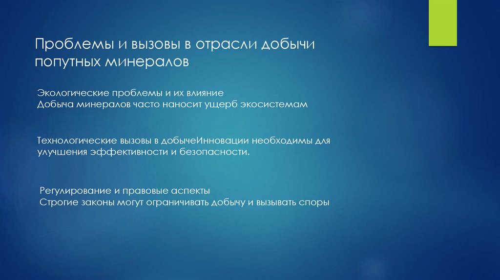 Проблемы и вызовы в отрасли добычипопутных минералов