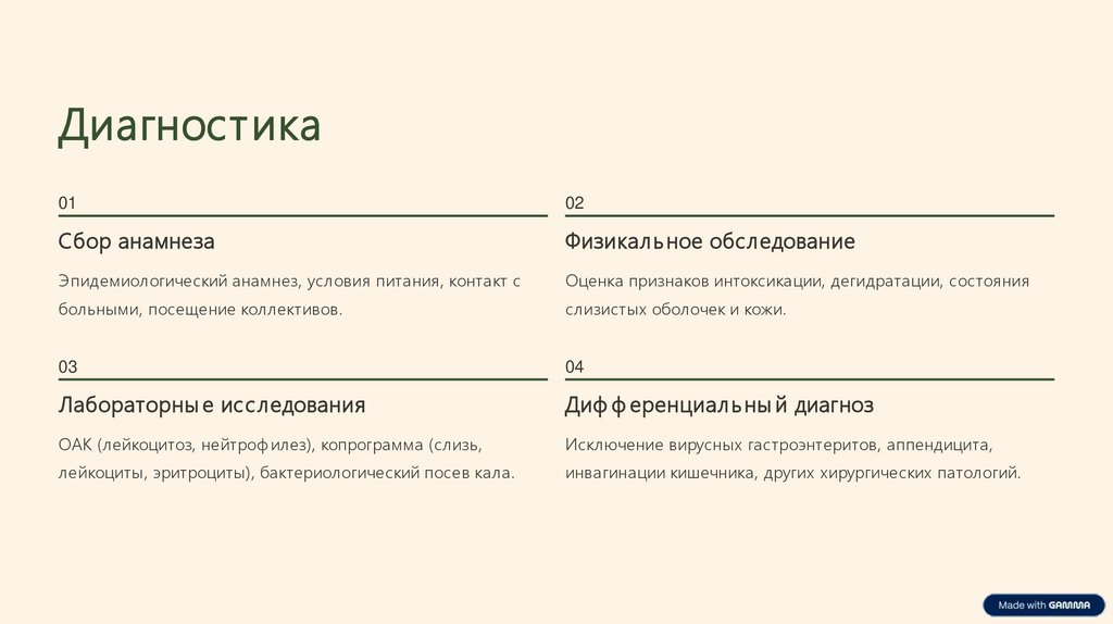 лейкоциты, эритроциты), бактериологический посев кала.