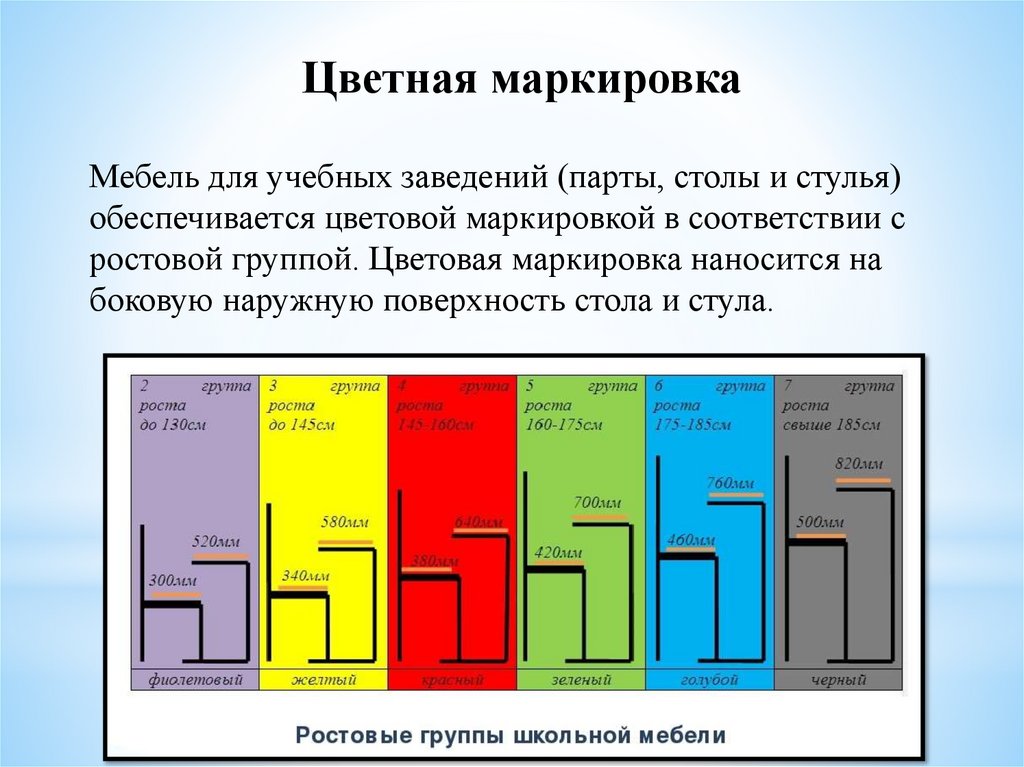 Цветная маркировкаМебель для учебных заведений (парты, столы и стулья)