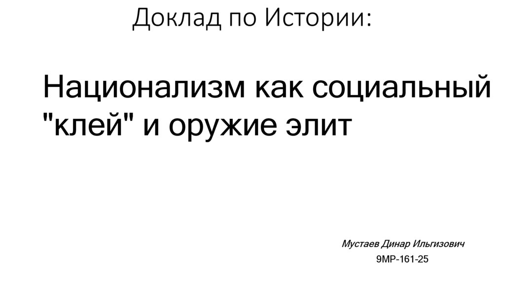 Доклад, Мустаев Динар, Национализм как клей и оружие элит(1)