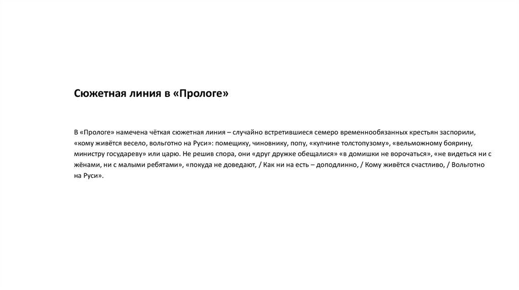 Сюжетная линия в «Прологе»В «Прологе» намечена чёткая сюжетная линия – случайно встретившиеся семеро временнообязанных крестьян заспорили,