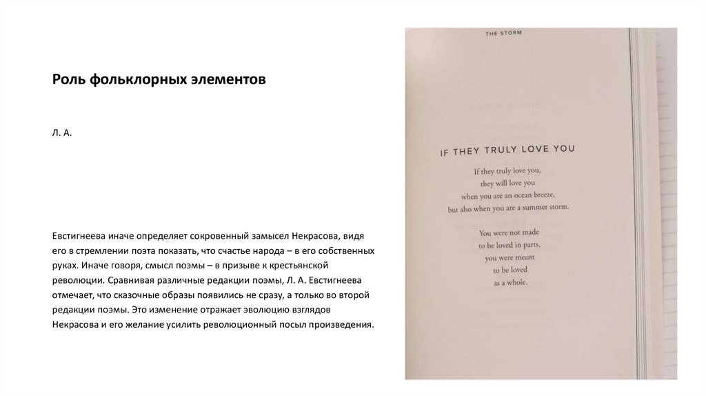 Евстигнеева иначе определяет сокровенный замысел Некрасова, видя