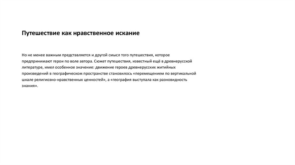 Путешествие как нравственное исканиеНо не менее важным представляется и другой смысл того путешествия, которое