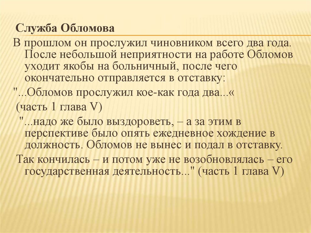 Служба ОбломоваВ прошлом он прослужил чиновником всего два года.