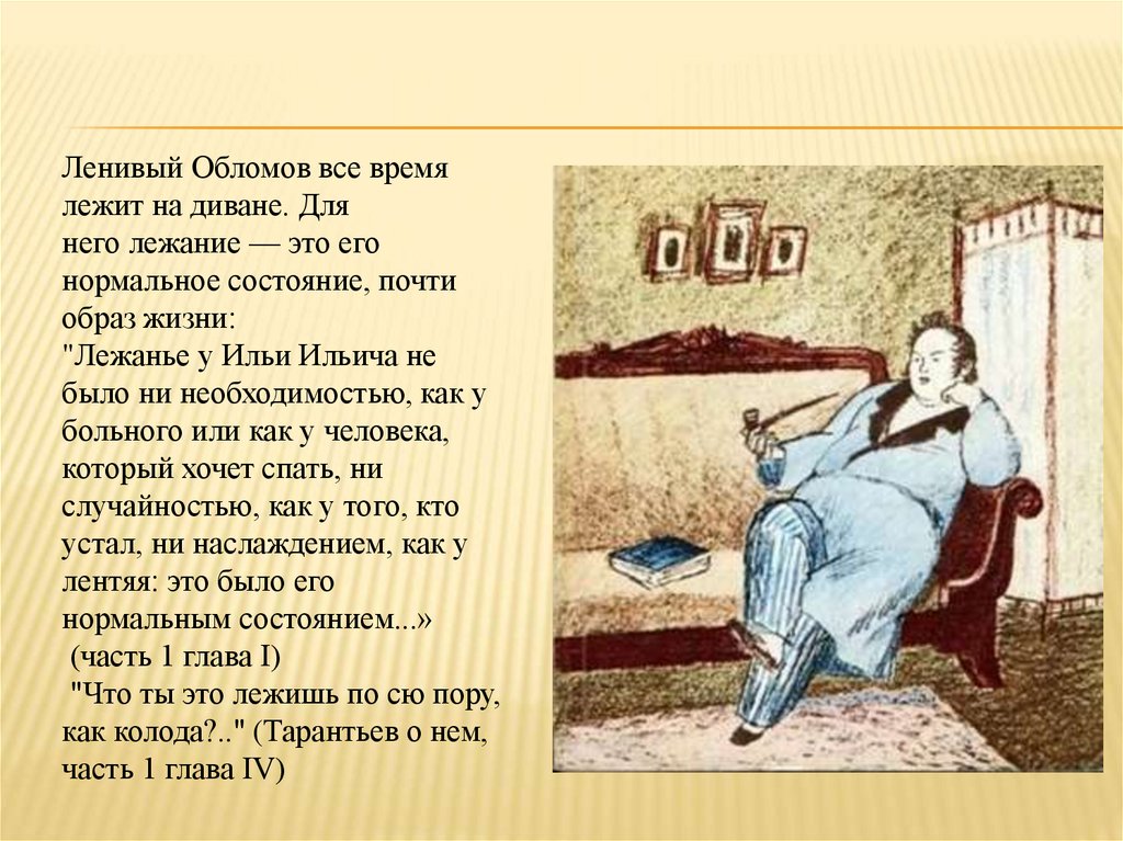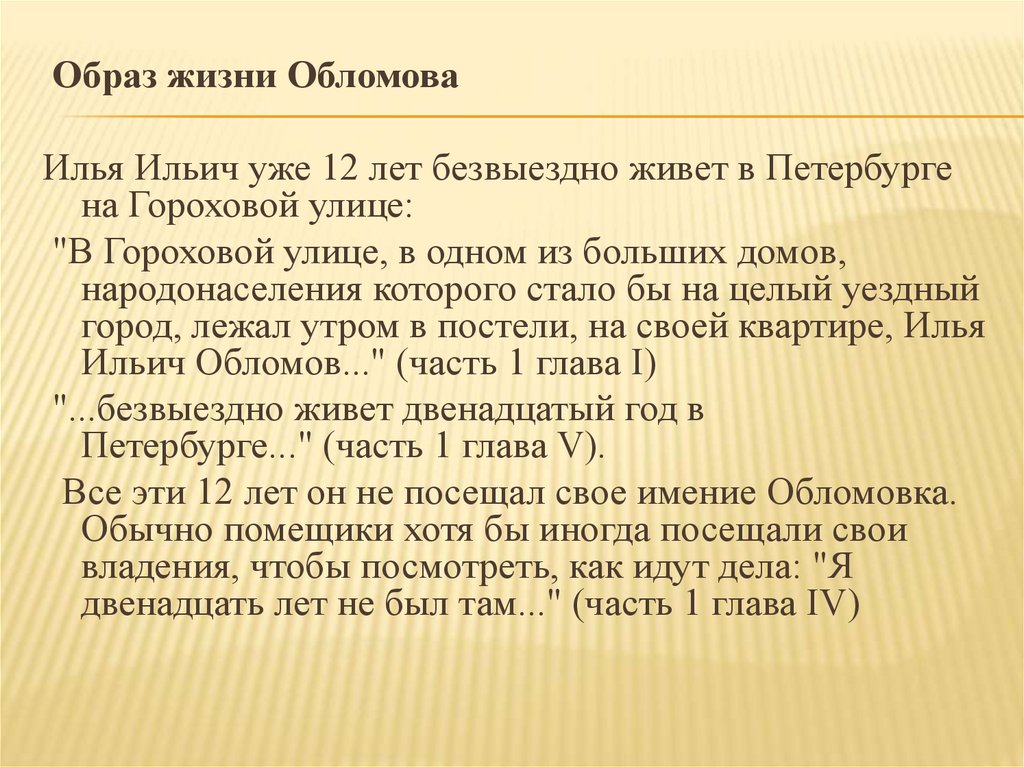 Образ жизни ОбломоваИлья Ильич уже 12 лет безвыездно живет в Петербурге