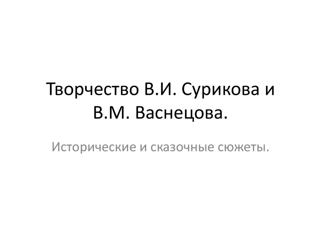 1. Творчество В.И. Сурикова и В.М. Васнецова.