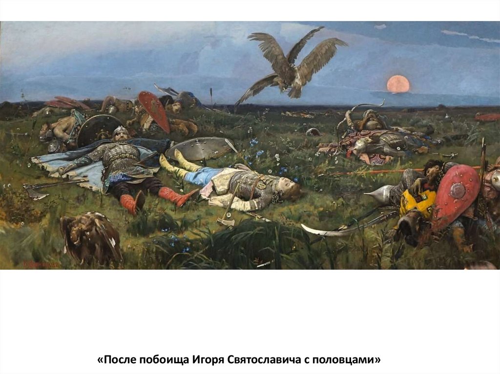 Картина основана на эпизоде из «Слова о полку Игореве», изображая последствия битвы между дружиной князя Игоря и