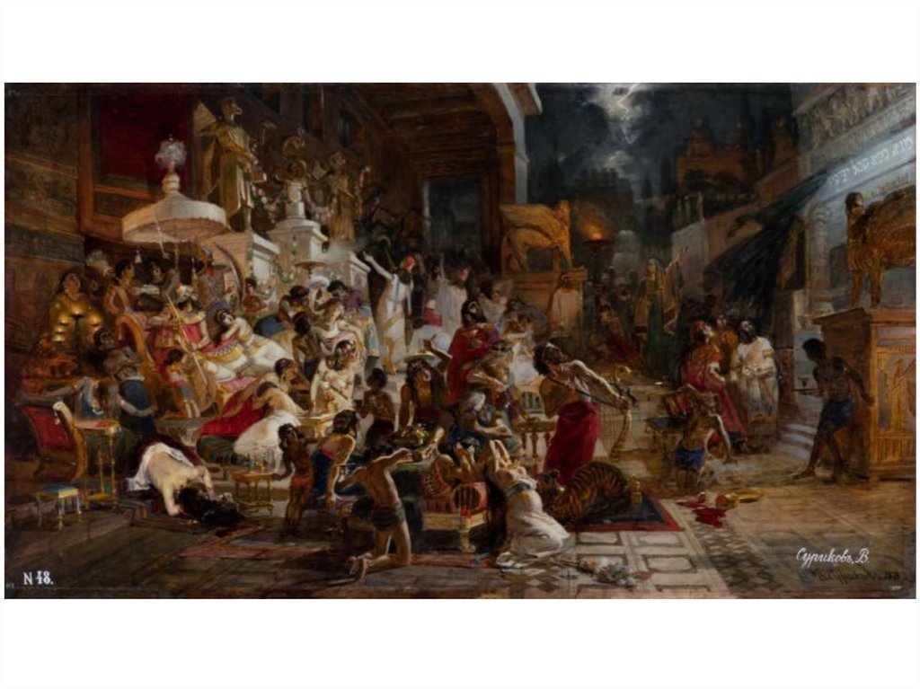 пир в ночь падения Вавилона. Во время пира на стене появились загадочные письмена, предвещающие