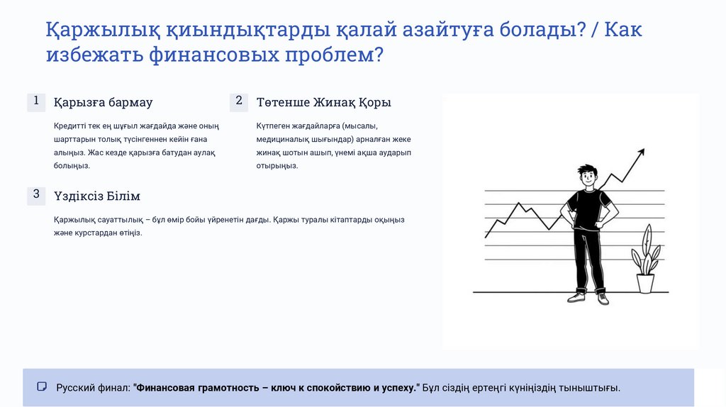 Русский финал: "Финансовая грамотность – ключ к спокойствию и успеху." Бұл сіздің ертеңгі күніңіздің тыныштығы.