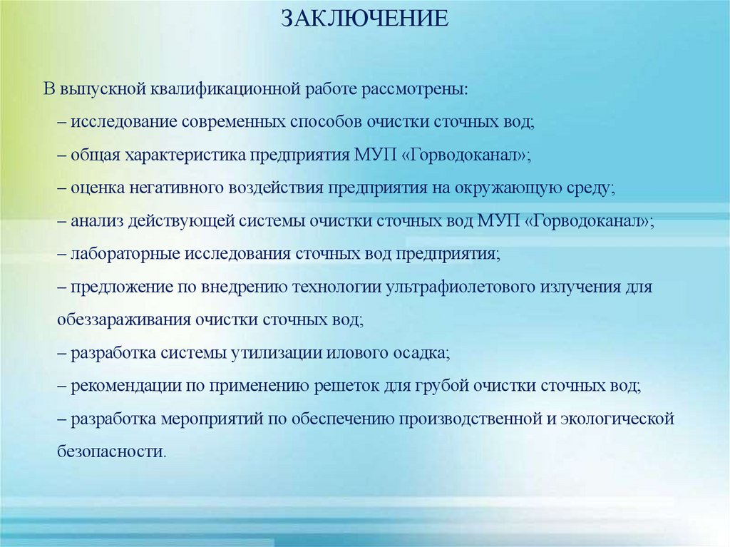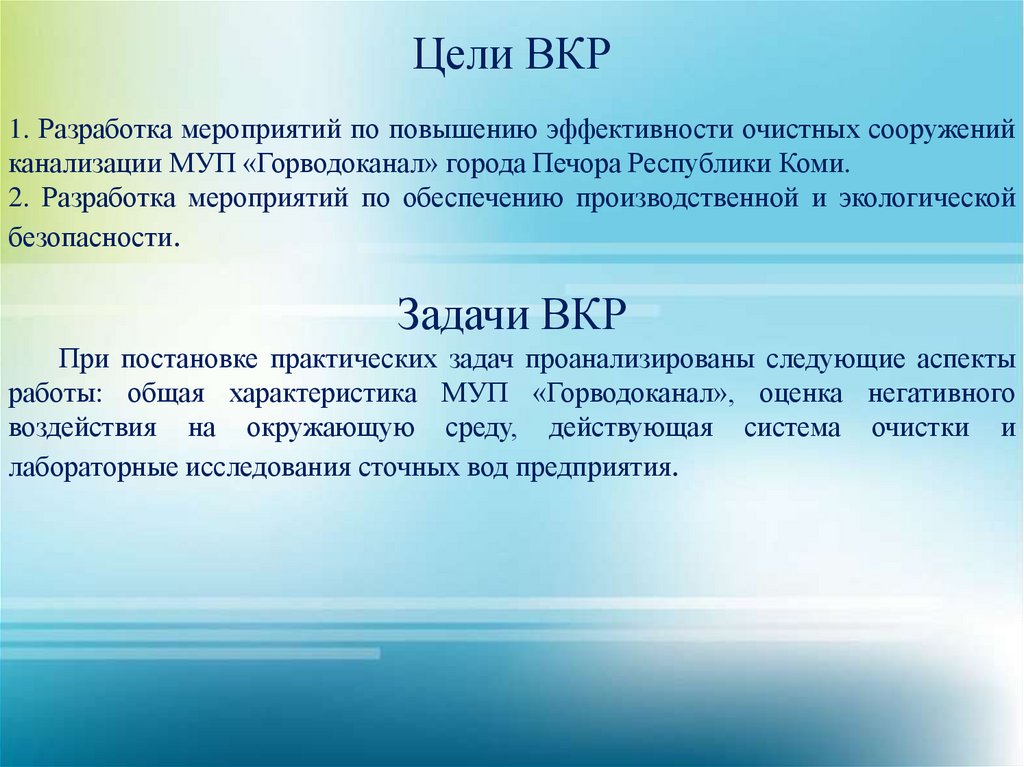 Цели ВКР1. Разработка мероприятий по повышению эффективности очистных сооружений