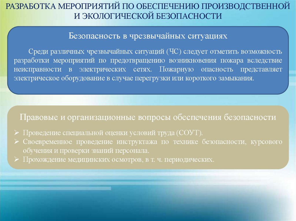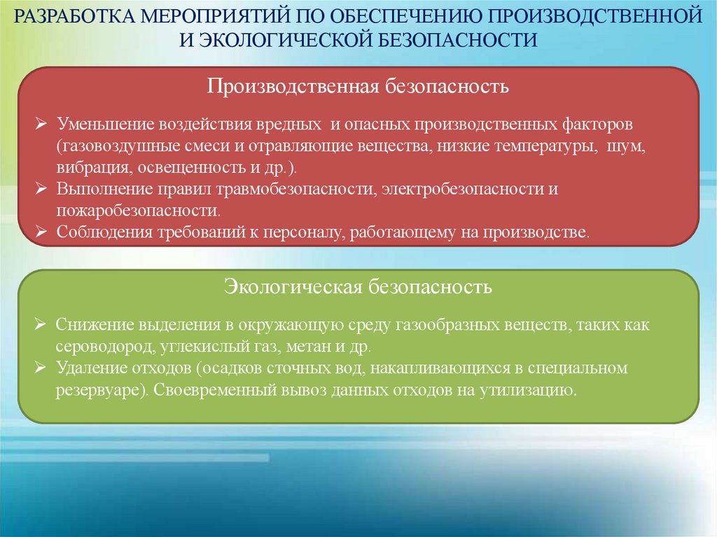 2. Разработка мероприятий по обеспечению производственной и экологической