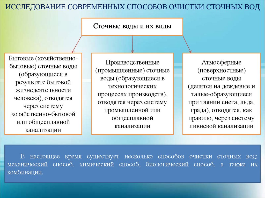 ИССЛЕДОВАНИЕ СОВРЕМЕННЫХ СПОСОБОВ ОЧИСТКИ СТОЧНЫХ ВОДСточные воды и их виды