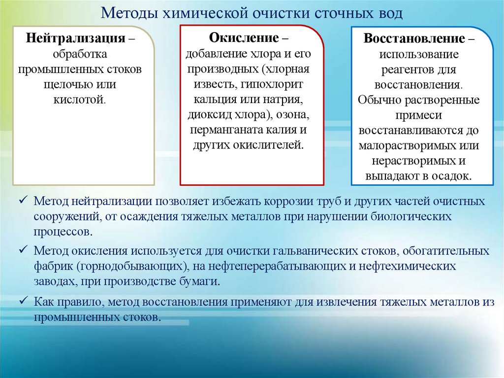 Данные методы применяются для обезвреживания промышленных сточных вод,