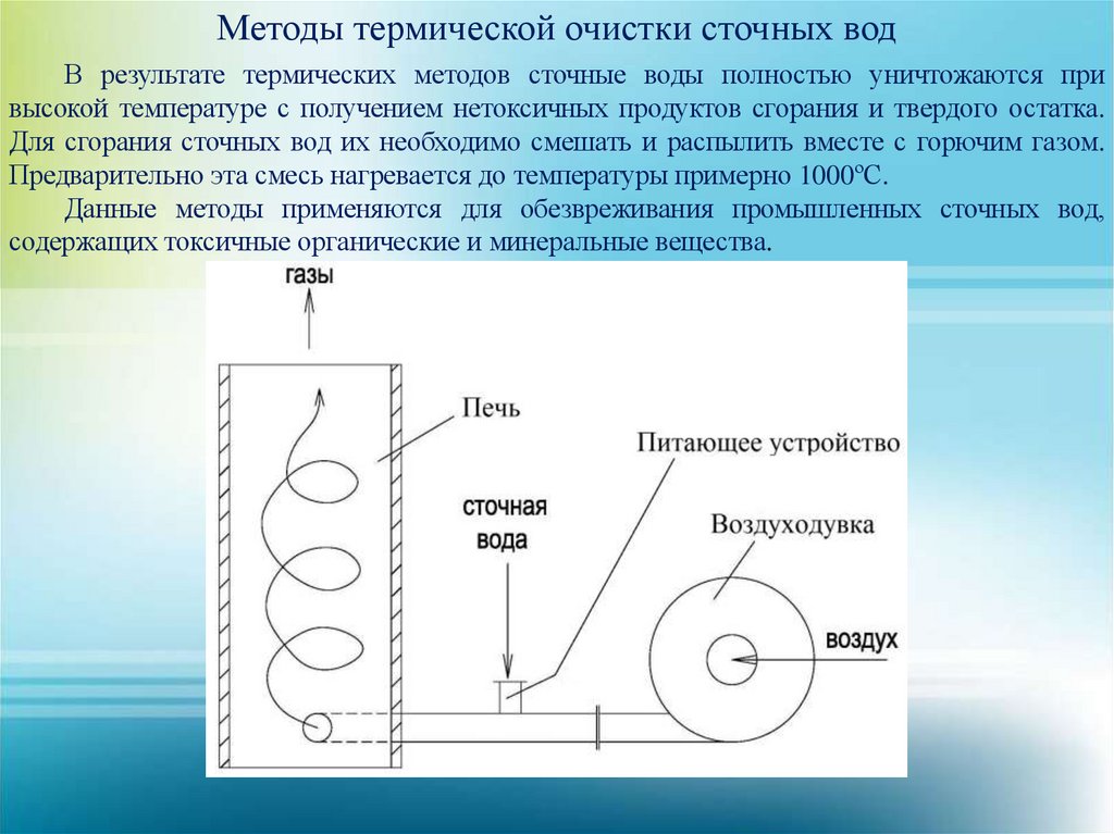 Методы термической очистки сточных водВ результате термических методов сточные воды полностью уничтожаются при