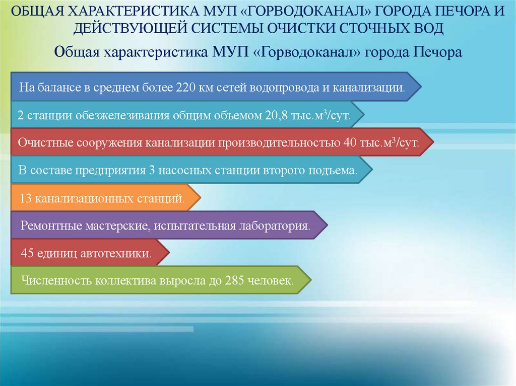ОБЩАЯ ХАРАКТЕРИСТИКА МУП «ГОРВОДОКАНАЛ» ГОРОДА ПЕЧОРА ИДЕЙСТВУЮЩЕЙ СИСТЕМЫ ОЧИСТКИ СТОЧНЫХ ВОД