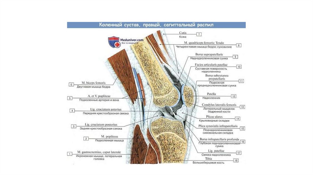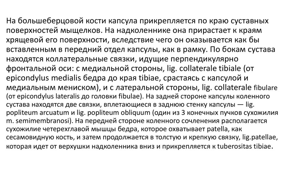 lymphatici poplitei. Иннервация капсул суставов обеспечивается ветвями nn.
