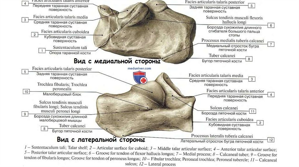 кости и выходя со стороны подошвы на боковой поверхности calcaneus).