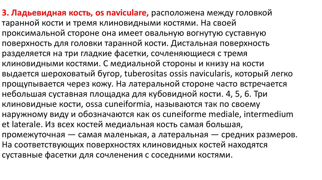 состав которой входит 10 костей: os naviculare, ossa cuneiformia mediale,