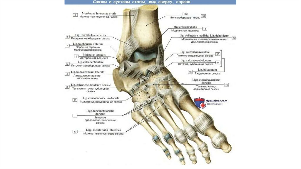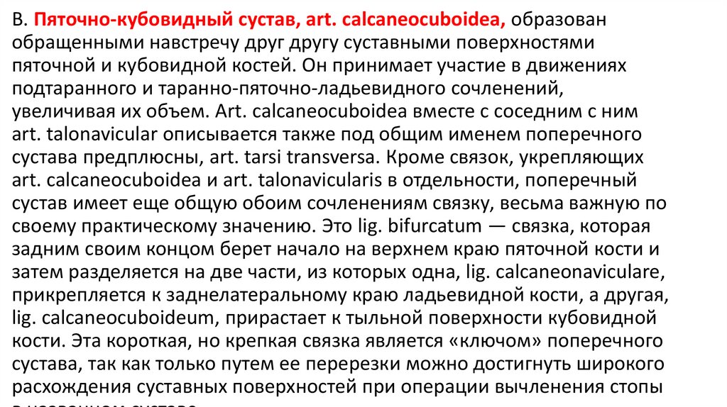 сустава предплюсны, art. tarsi transversa. Кроме связок, укрепляющих